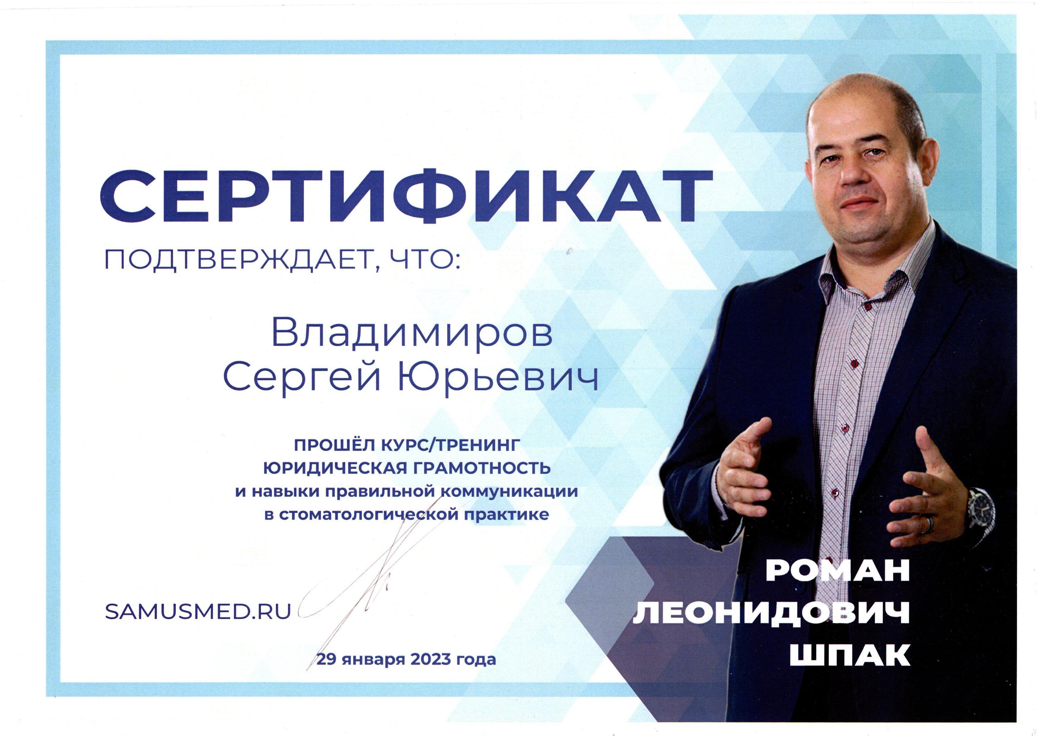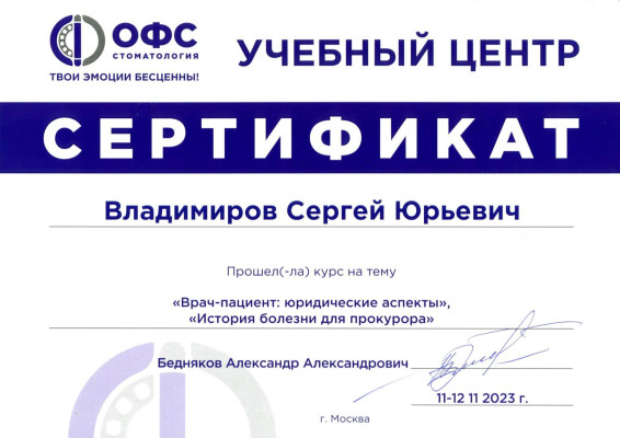 - 2023 г. — «Врач — пациент: юридические аспекты», ОФС Стоматология.