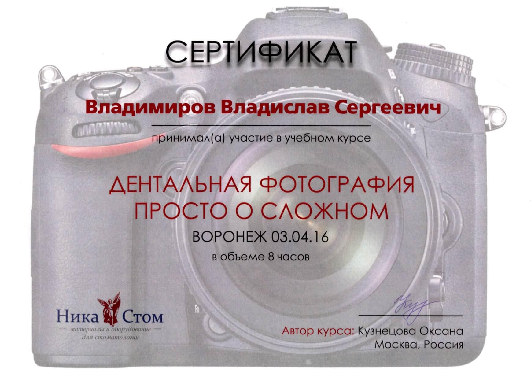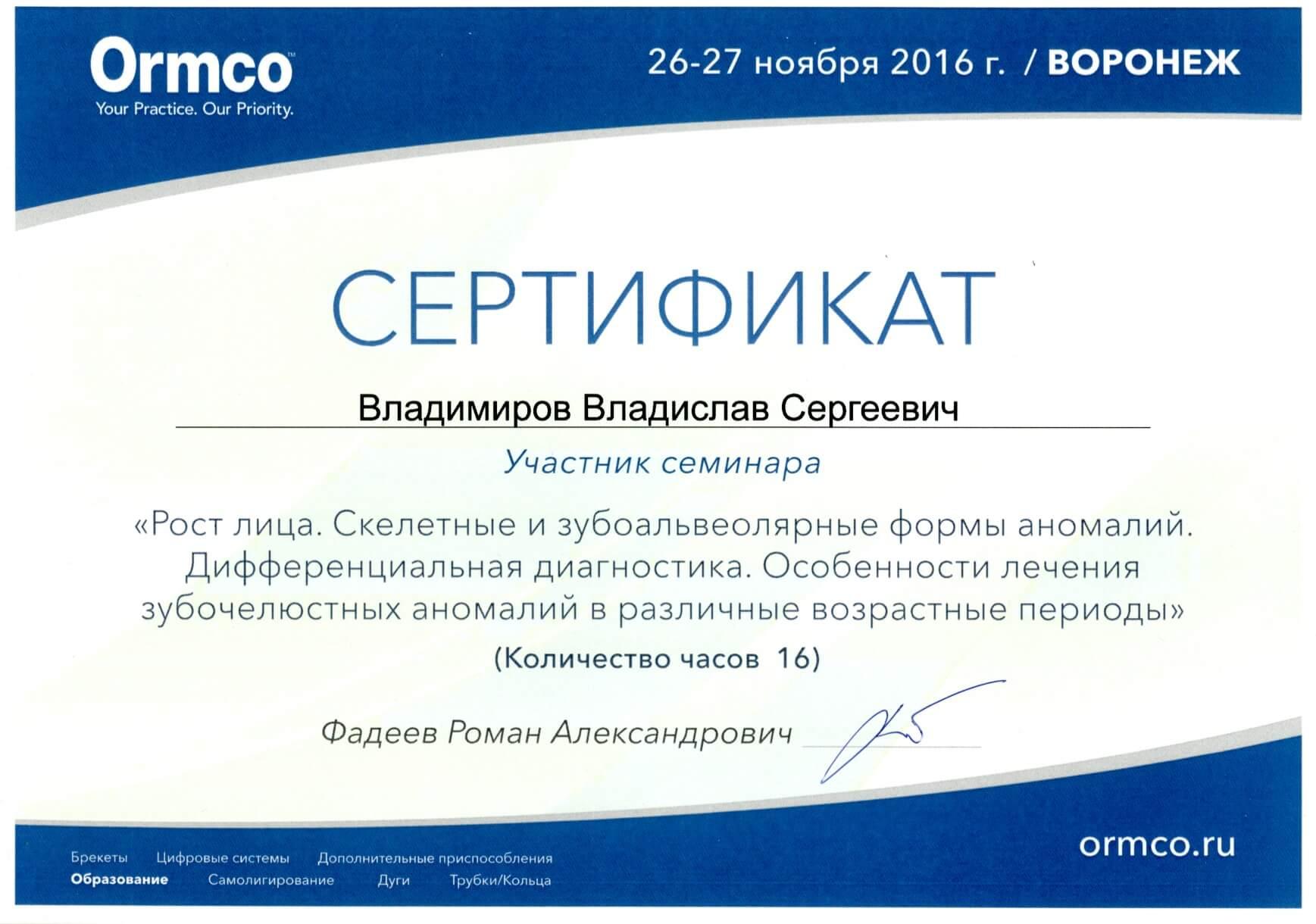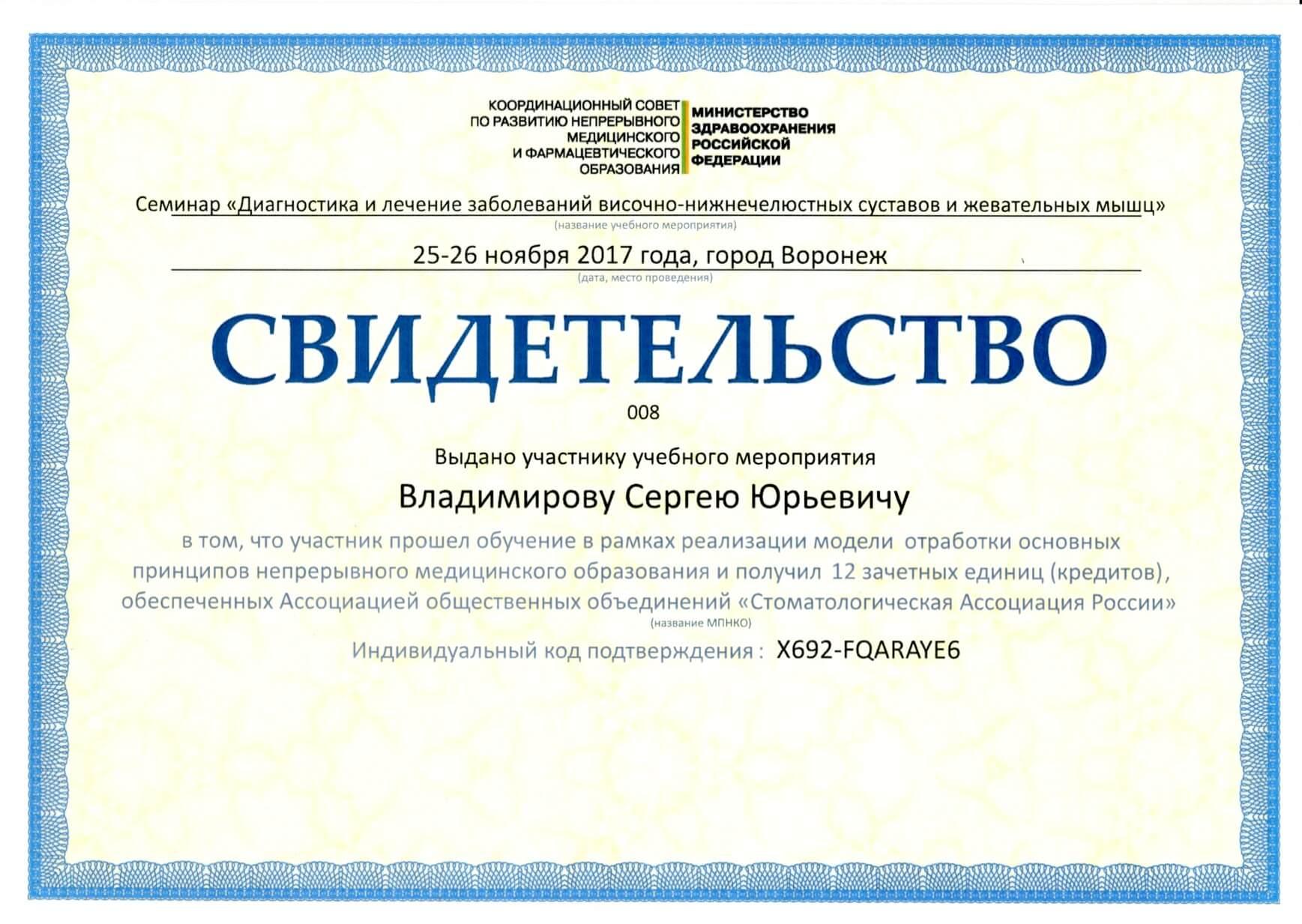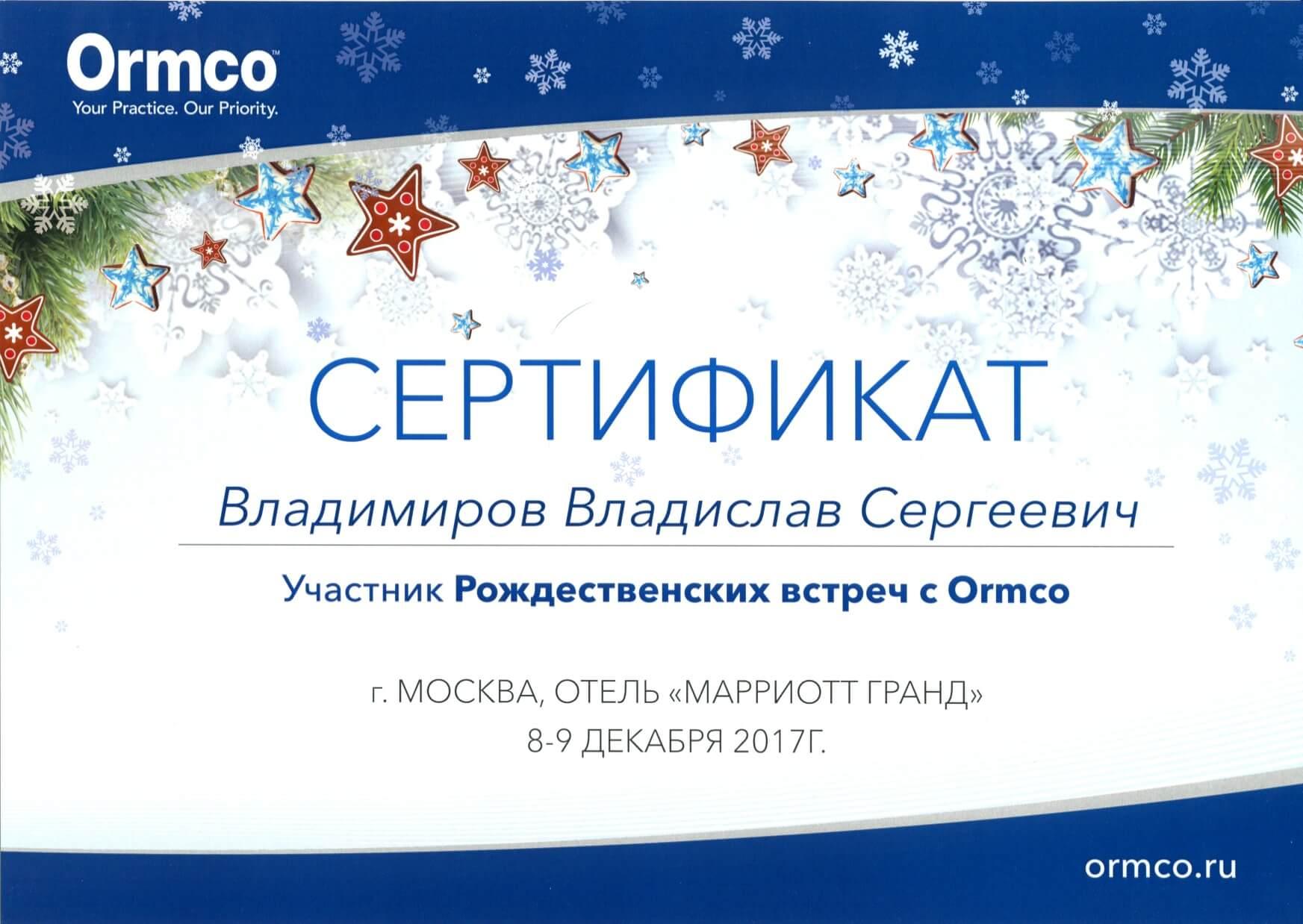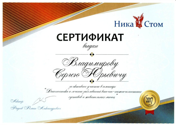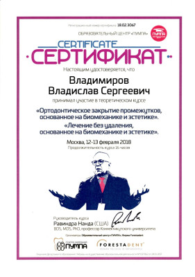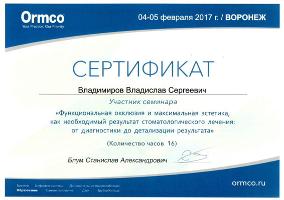 - 2017 г. — «Функциональная окклюзия и максимальная эстетика, как необходимый результат стоматологического лечения», Ormco.