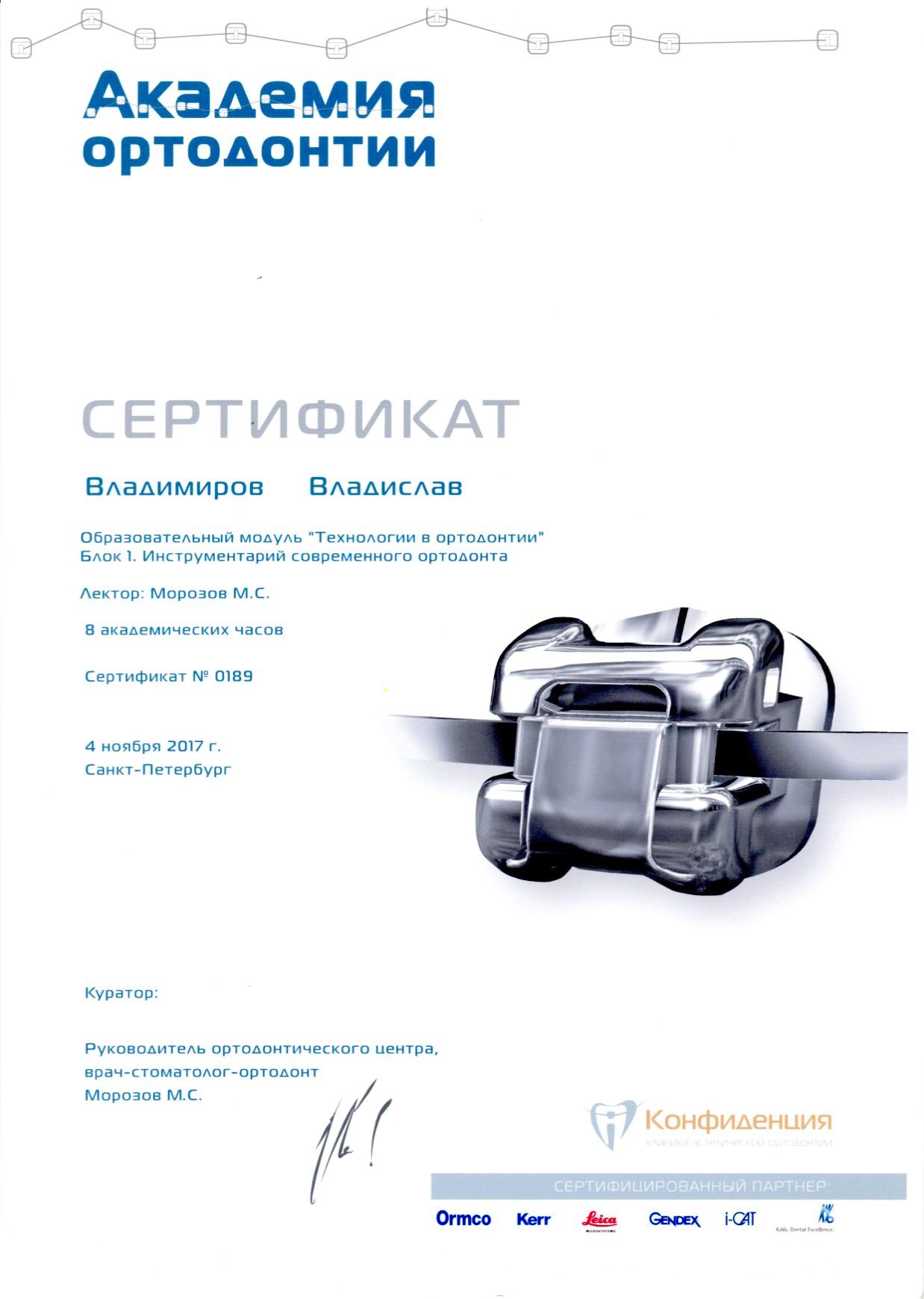 - 2017 г. — «Технологии в ортодонтии», Академия ортодонтии.