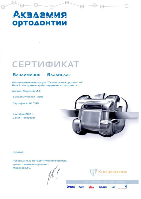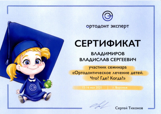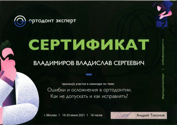 Владислав Сергеевич — молодой врач, который может собрать воедино огромный опыт старших коллег и современные технологии в ортодонтии. Работает над диссертацией, является автором статей журнала Институт Стоматологии.
