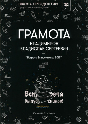 - В 2019 году закончил ординатуру по специальности «Ортодонтия» на базе СПбГПМУ.