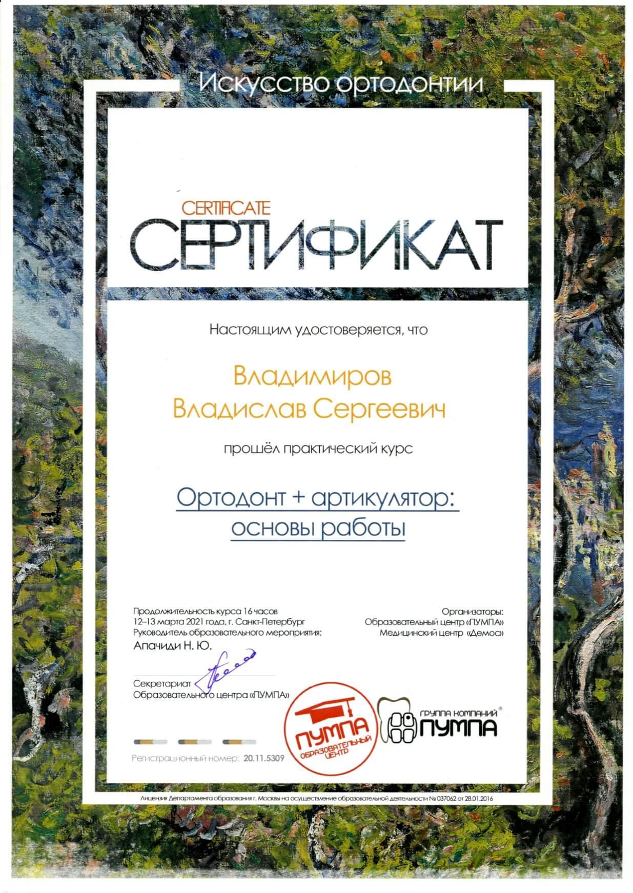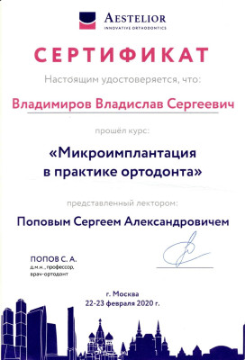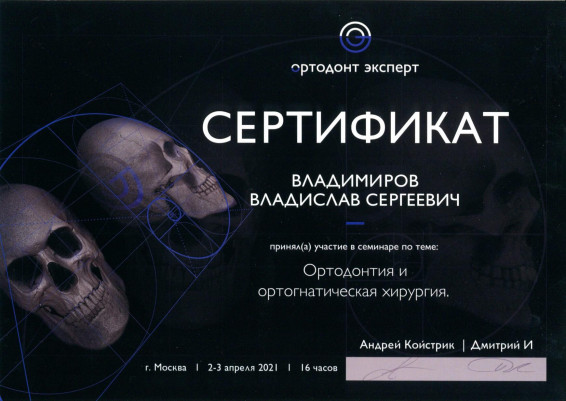 - 2021 г. — «Авторский курс Ортодонт-мастер», Ортодонт мастер, Сергей Попов.