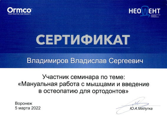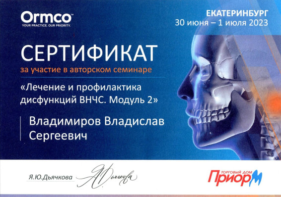 - 2023 г. — «Лечение и профилактика дисфункций ВНЧС», Ormco.