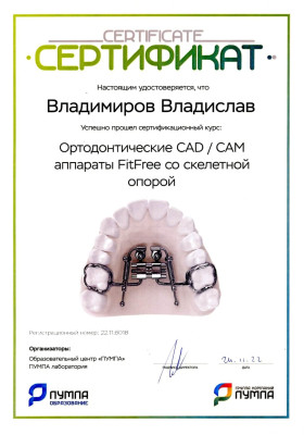 - 2022 г. — «Ортодонтические CAD/CAM аппараты FitFree со скелетной опорой», ПУМПА.