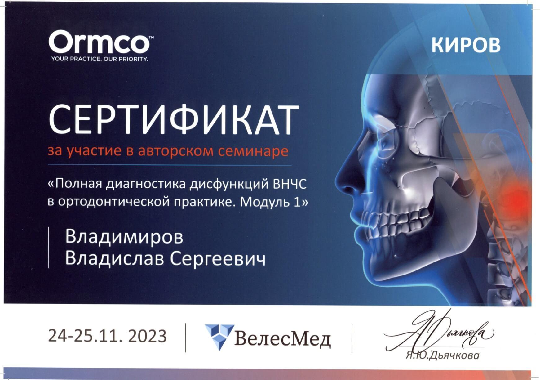 - 2023 г. — «Полная диагностика дисфункций ВНЧС», Ormco.
