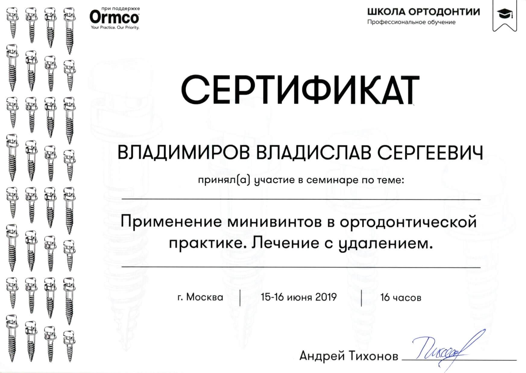- 2019 г. — «Применение мини-винтов в ортодонтической практике. Лечение с удалением.», Школа ортодонтии.