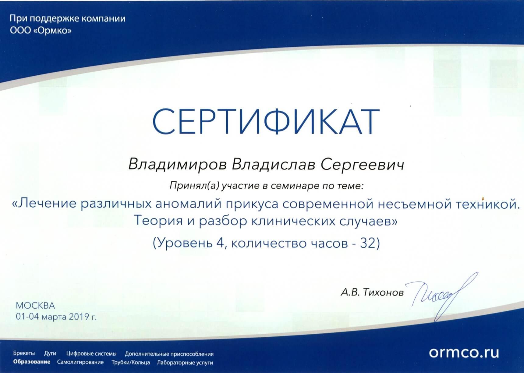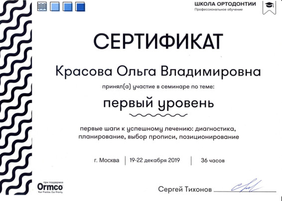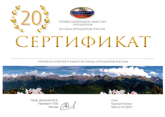 - 2019 г. — «Лечение различных аномалий прикуса современной несъемной техникой», Ormco.