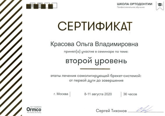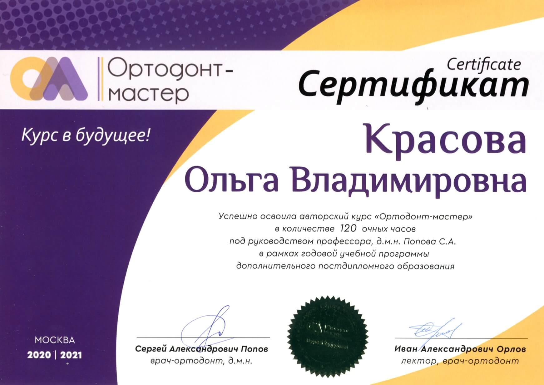 - 2021 г. — «Годовой Курс Ортодонт мастер», Ортодонт Мастер.