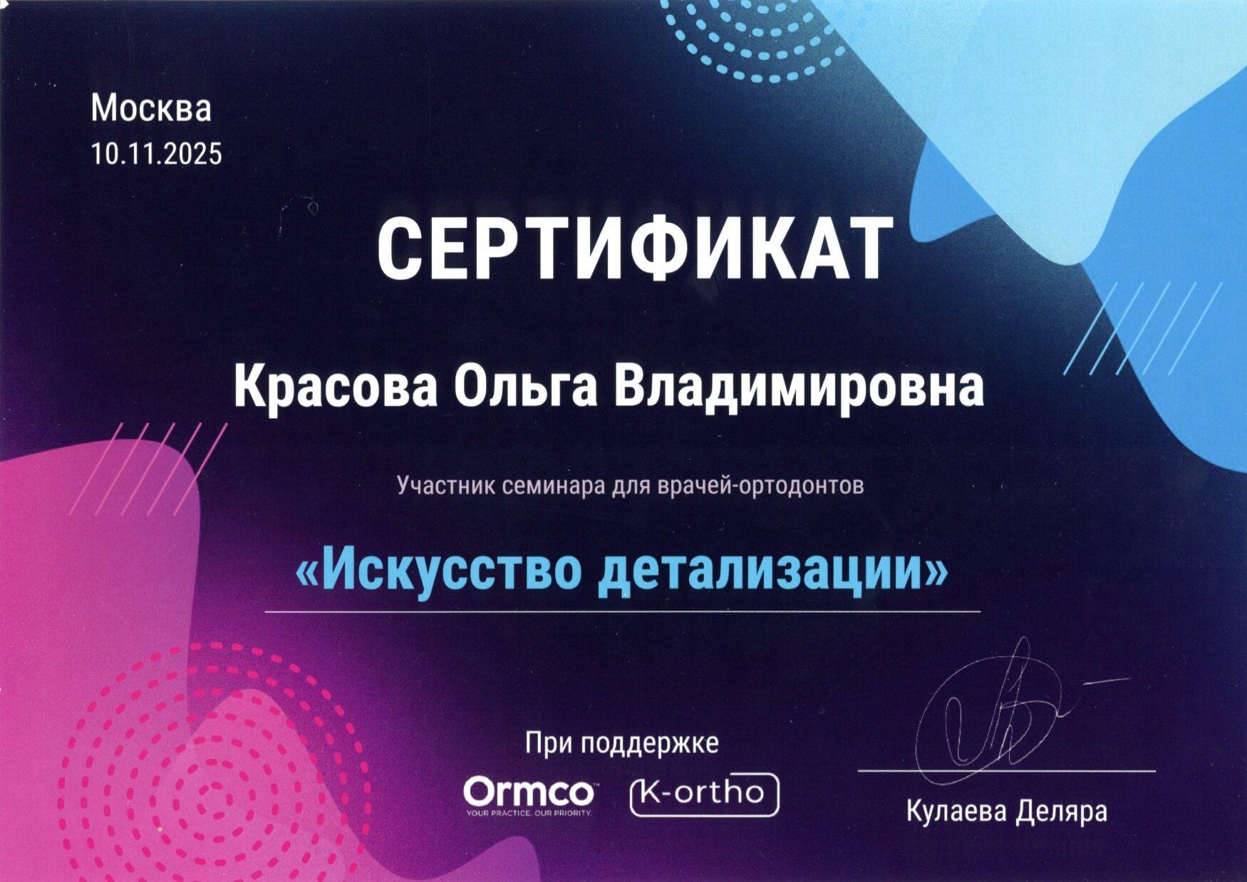 - 2025 г. — «Искусство детализации», Ormco, K-ortho, Деляра Кулаева.