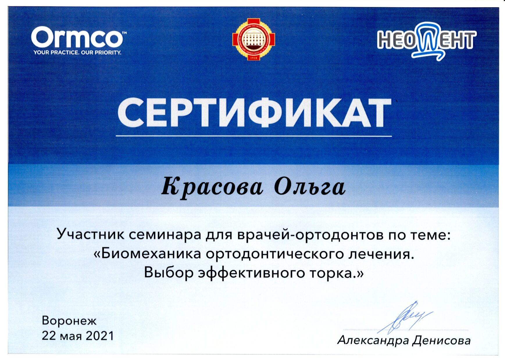 - 2021 г. — «Биомеханика ортодонтического лечения», Ormco, Александра Денисова.
