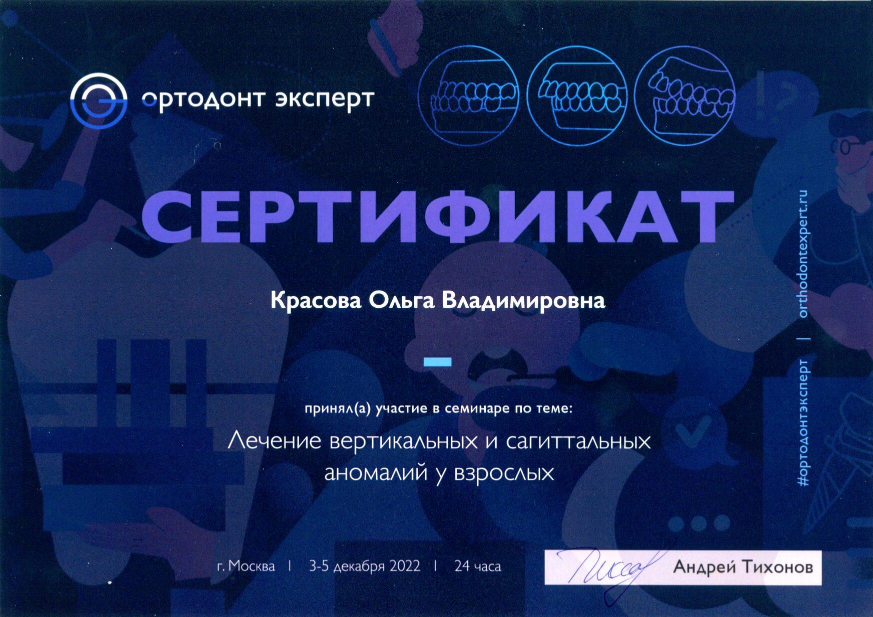 - 2023 г. — «Лечение вертикальных и сагиттальных аномалий у взрослых», Ортодонт эксперт.