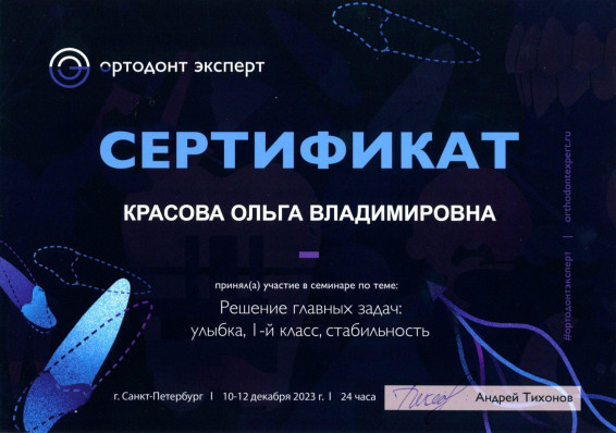 - 2023 г. — «Решение главных задач: улыбка, 1 класс, стабильность», Ортодонт эксперт, Андрей Тихонов.