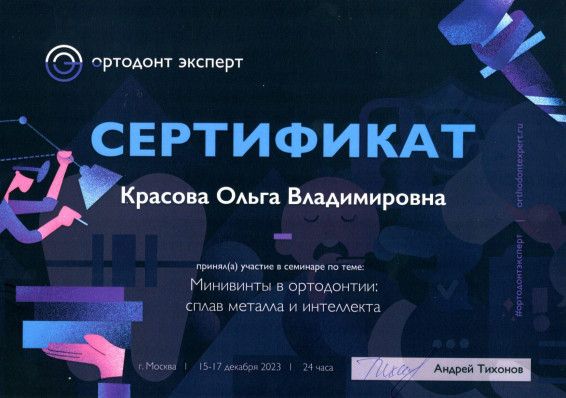 - 2023 г. — «Мини-винты в ортодонтии: сплав металла и интеллекта», Ортодонт эксперт, Андрей Тихонов.
