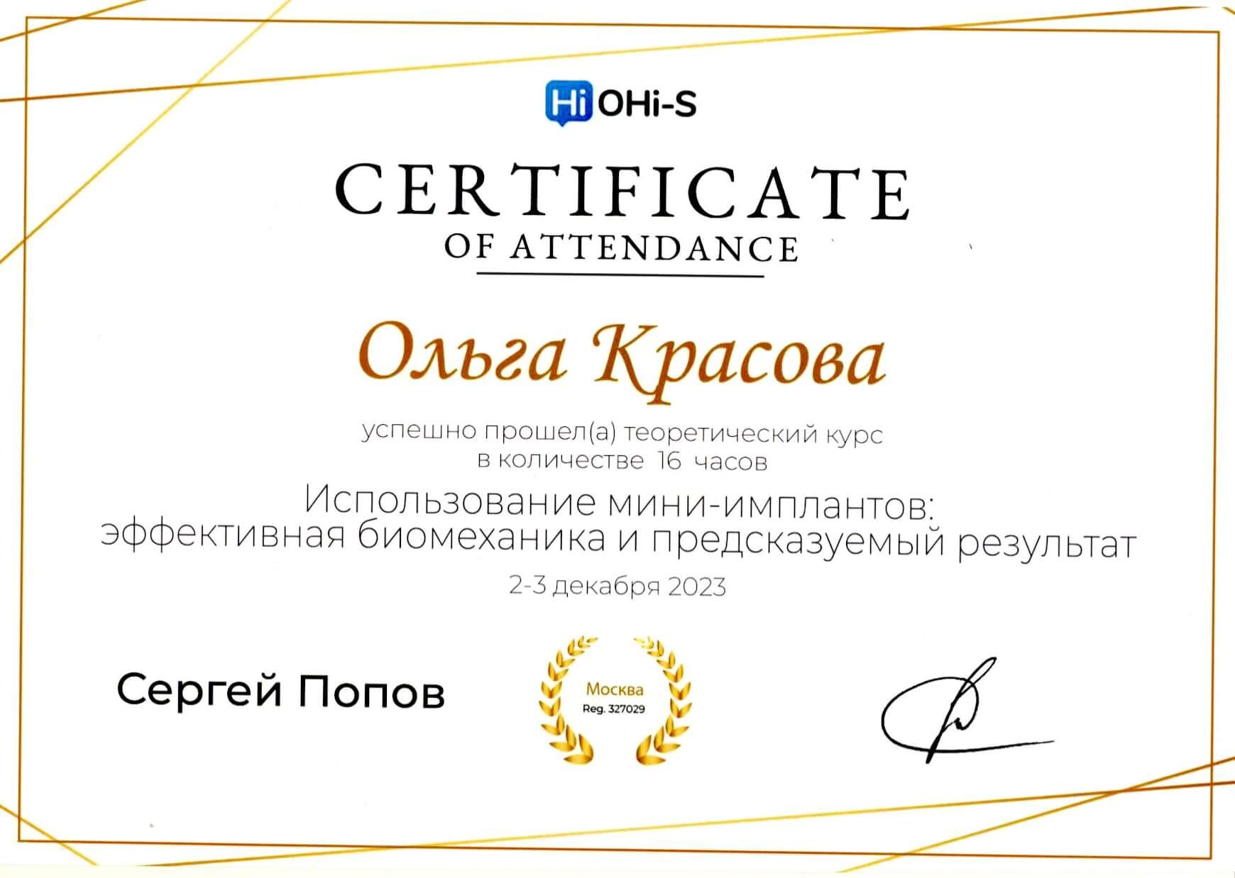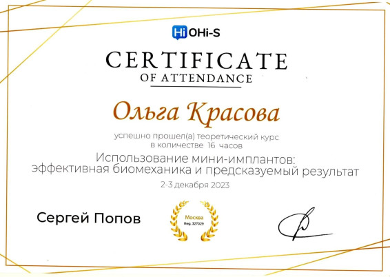 - 2023 г. — «Использование мини имплантов», HiOHi-S, Сергей Попов.